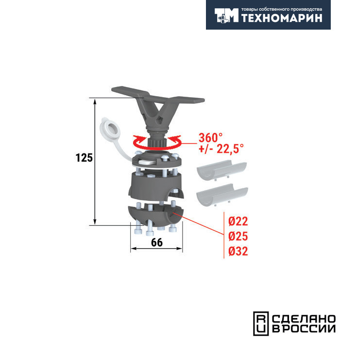 Хому позволяет закрепить утку на леер 22, 25, 32 мм