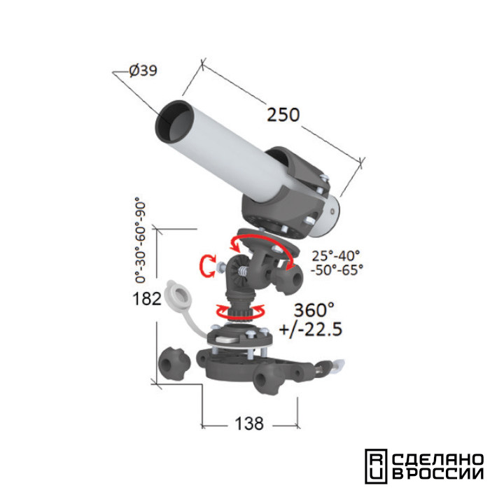 Держатель спиннинга сквозной на Т-образный профиль быстросъемный, нержавеющая сталь AISI 304