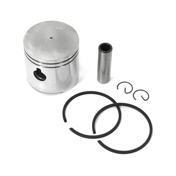 В комплект входит: поршень, поршневые кольца, поршневой палец, стопорные кольца поршневого пальца