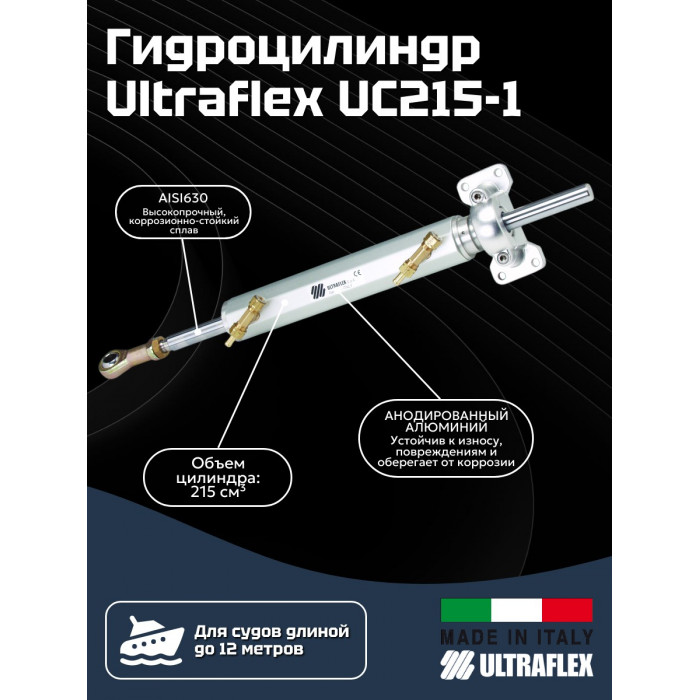 Оптимальное усилие: Гидроцилиндр Ultraflex UC168-1 создает выходное усилие 673 кг, что обеспечивает уверенное управление даже на высоких скоростях.