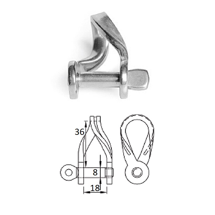 Скоба такелажная плоская изогнутая с винтовым пальцем 8 мм
