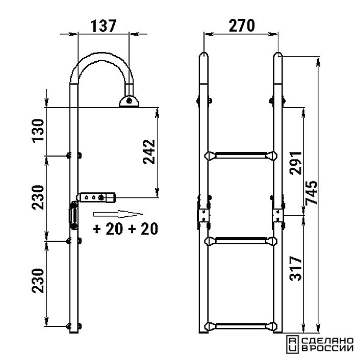 Трап складной предназначен для установки на горизонтальную поверхность кормы плавсредства.