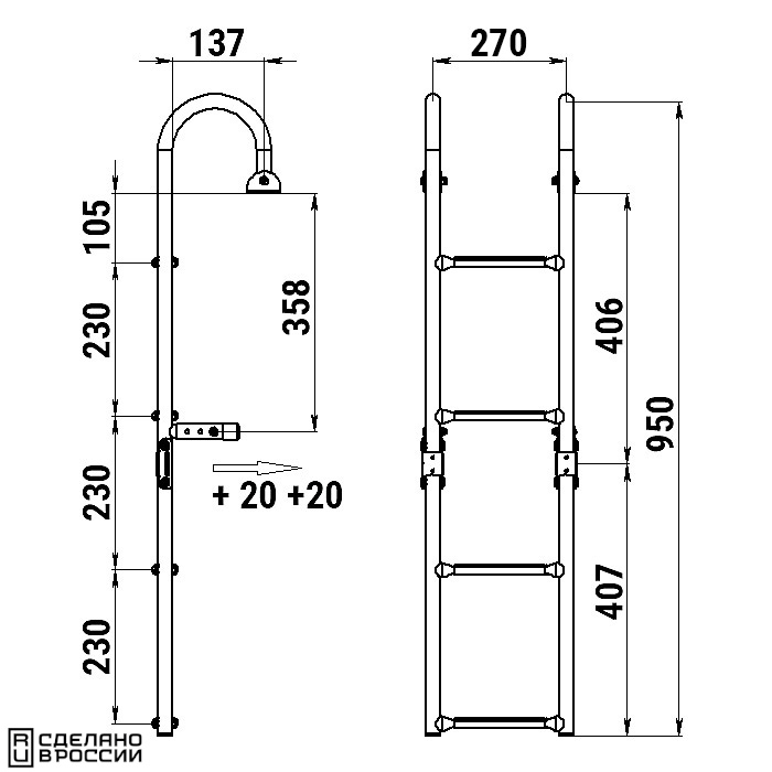 Трап складной предназначен для установки на горизонтальную поверхность кормы плавсредства.
