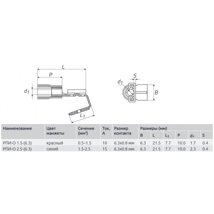 • размер контакта определяется шириной «В» клеммы РПИ-П