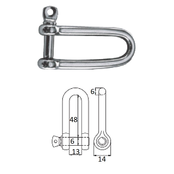 Скоба такелажная удлиненная с винтовым пальцем 6 мм сталь AISI 316